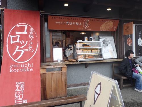 豊後牛を使ったコロッケのお店です。街道にはコロッケ屋さんが何軒かありますが、地元ならではの豊後牛が入ったこちらがお勧めです。大分名物のとり天もこちらで販売しています。