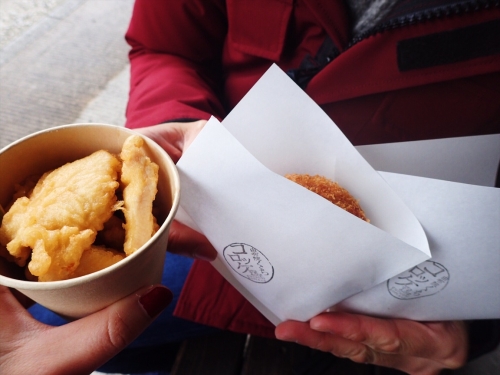 • 写真:ハクナマタタロッケ180円、とり天200円