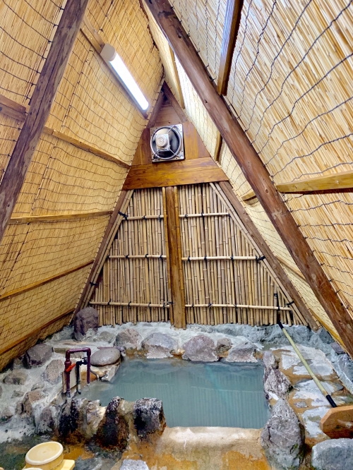 【3】わら葺き屋根がインパクト大!みょうばん湯の里の家族湯