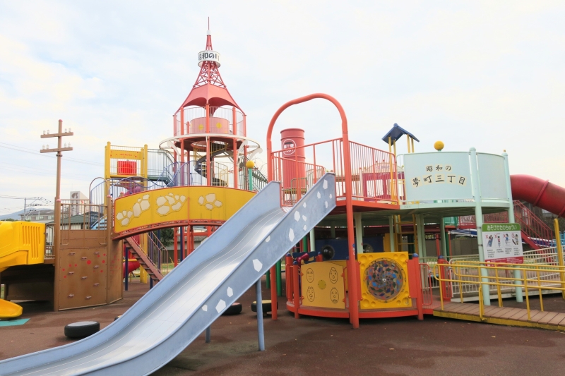 昭和の町をイメージした巨大コンビネーション遊具があり、日本一豪華な無料の公園と言っても過言ではありません。