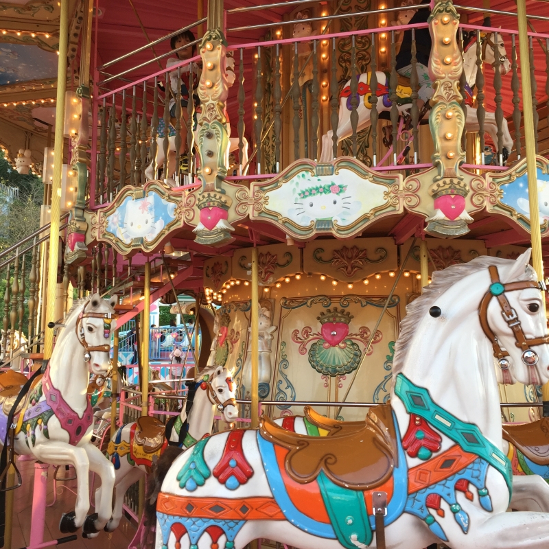 キティちゃんのメリーゴーランドがとても可愛く、特別感が溢れています。キラキラ輝くゴールドを基盤にキティちゃんの世界観が広がる可愛い乗り物で、特にキティちゃんが好きな方にはおすすめ度NO.1の乗り物です。