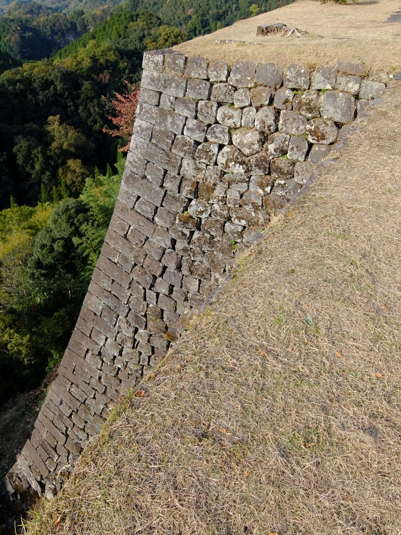 三の丸北側の石垣は、高石垣がめぐる岡城の中でも最も高く、まさに要塞としてそびえ立つといった様相が見られます。