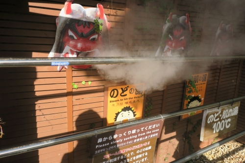 こちらの写真はかまど地獄内にある像ですが、釜の上にいる鬼は八幡竈門神社で説明した伝説に出てくる人食い鬼。逃げた鬼ですがその後は改心し、現在は地獄の門番をつとめています。鬼滅ファンならぜひ一緒に写真を撮りたいスポットです。