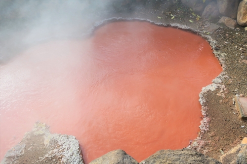 八幡竈門神社から車で約10分のところにある、別府地獄の一つ「かまど地獄」。別府地獄は7か所ありますが、中でもかまど地獄はバラエティ豊かで色とりどりの地獄が見られるとして人気が高い地獄です。