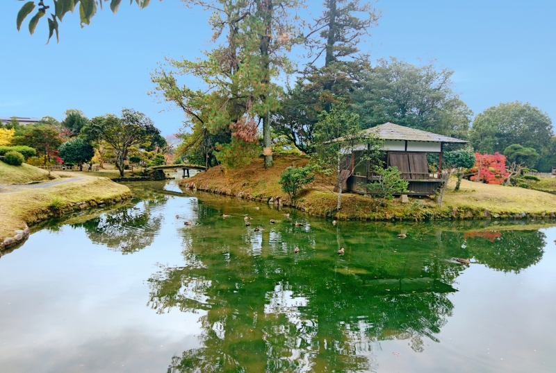 庭園の大半を池が占めており、水面に映る島影や四季折々の樹木の枝ぶりは、洗練された美しさ。入園料無料で一般公開されており、市街地の中にあるので気軽に訪れることができる穴場スポットです。