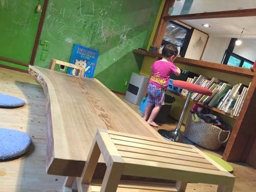 写真:まき子【あわくら温泉 元湯】は外見こそ年季がありますが、中に入るとそこは別世界!おもちゃがいっぱいで子供がきゃっきゃと走り回り、木をふんだんに使ったおしゃれな空間には本や雑誌もたくさんあり、まるで子供も楽しめるカフェのよう。川のせせらぎをBGMに、温泉も、食事も、ドリンクも、子供の遊び場としても、他にはない体験がきっとできます。