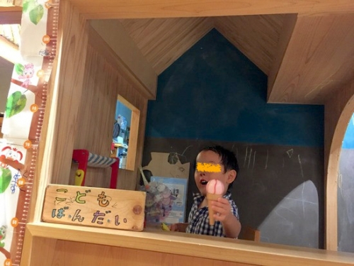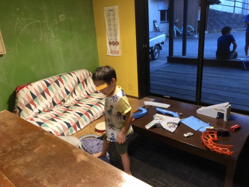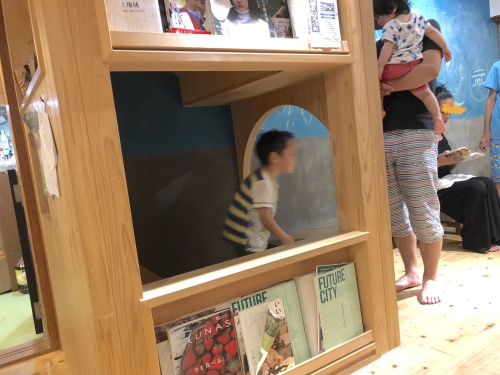 カフェスペースを、子供用の乗り物でガシガシ走っても全然OK!