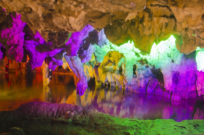 映画『八つ墓村』のロケ地になった場所として有名な洞窟です。岡山県の指定天然記念物である鍾乳洞で、与謝野晶子がここを訪れ「奇に満ちた洞」と詠んだことからその名がついたとか。洞内は映画のイメージとは異なり、ところどころ美しくライトアップされ神秘的な雰囲気。全体的に天井が低めのため、場所によっては腰をかがめたまま数メートル歩かなければならないところや、並んで歩けない幅の狭い道もあります。