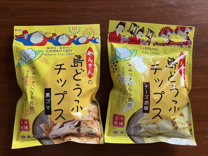 島豆腐をすり潰し、小麦粉を混ぜて油で揚げた後、さらに焼き上げた油分も少ないお菓子に仕上げているので、サクサク食感で軽い仕上がりで病みつきです。