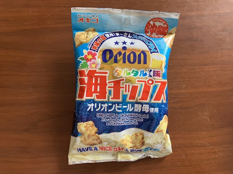オリオンビール酵母を使用したフィッシュフライチップスで、タルタルソース風味があとをひく美味しさですぐになくなってしまいます。32gと食べ過ぎないサイズ感で、お酒のおつまみにちょうどいいのも魅力的です。大人のおやつとしてお土産におすすめです。