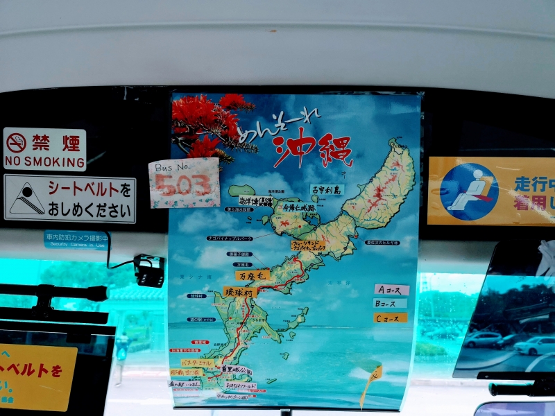 ゆいレール旭橋駅近くの「新那覇バスターミナル」は、定期観光のバス乗り場になっている他、観光情報センターやコインロッカーなどもある観光客に便利なスポットです。「古宇利島・今帰仁城跡・美ら海コース」のバスもこちらのバスターミナルから出ていますが、予約をしておけば他の指定停留所からも乗車可能です。筆者は国際通り付近に滞在していたため、ホテルから程近い「安里停留所」から乗車しました。