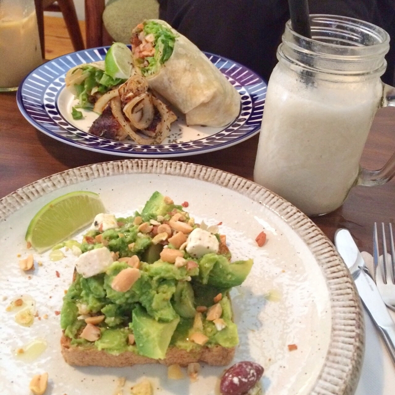 • 写真:トラベルライターアボカドトースト¥600、ハーブチキンブリトー¥650