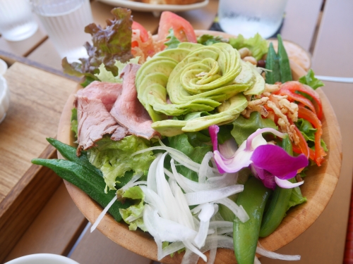 サンセットを眺めながら食事が楽しめるディナータイムもいいですが、朝9時から営業しておりブランチもおすすめです。見た目にも楽しませてくれる「ブランチサラダボール」は、ローストビーフも入っており食べ応えのある一品。そして「ブランチローストビーフ」は、サクサクのクロワッサンと、柔らかいローストビーフが絶品です。