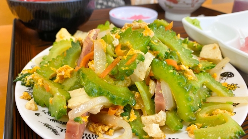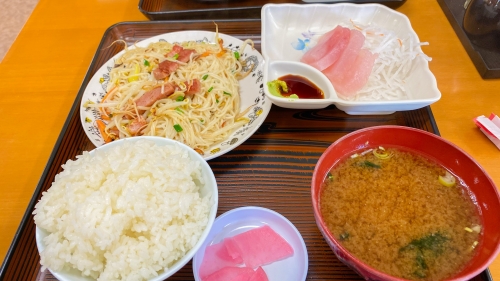 筆者がいただいたのは沖縄の定番料理であるそーめんちゃんぷる定食(680円)と、ゴーヤちゃんぷる定食(720円)。定食には嬉しいことにマグロのお刺身もついてきます。どちらも量がたっぷりで、大食いの方でもかなり満腹になりそうなボリューム。コスパよく沖縄料理を堪能したい方にオススメです。