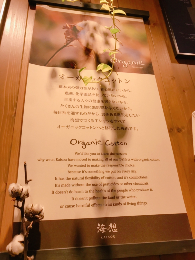 上の写真にもあるように、このオーガニックコットンは、使用者をはじめ、生産者や生物にも気を配った海想の想いから作られたTシャツとのこと。そう考えると、また違った愛着が生まれると思います。そんな素敵なTシャツは、自分への品として買ってもよし、お土産にしても喜ばれる一着だと思います。