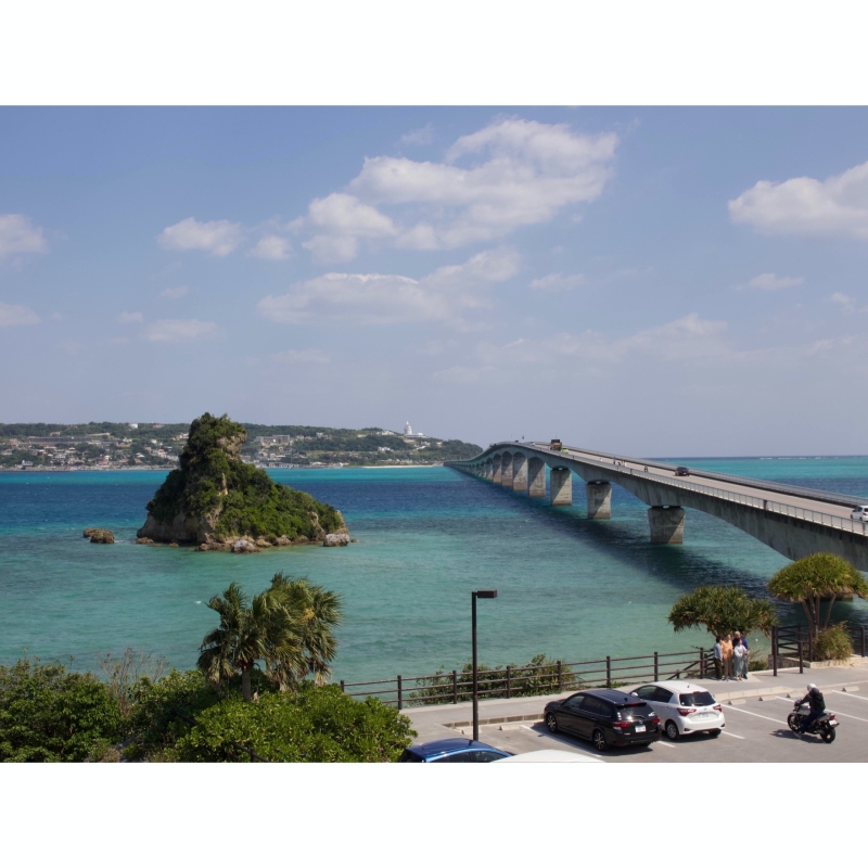 本島からは古宇利大橋を渡って車で気軽に行くことができる、周囲が約8Kmの島。本島屈指のきれいな海が見られるスポットとして知られていて、心癒されるエメラルドグリーンの海が広がる絶景が楽しめます。