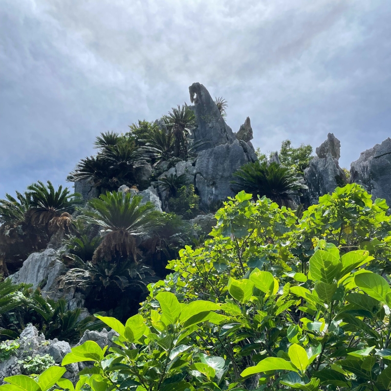 数十万年前までは鍾乳洞だった場所が崩れて亜熱帯の森となっており、80分かけてガイドさんと一緒に散策することができます。約1万8000年前に生きていた「港川人」の居住区の可能性も高いと考えられていて、今も発掘調査が行われています。