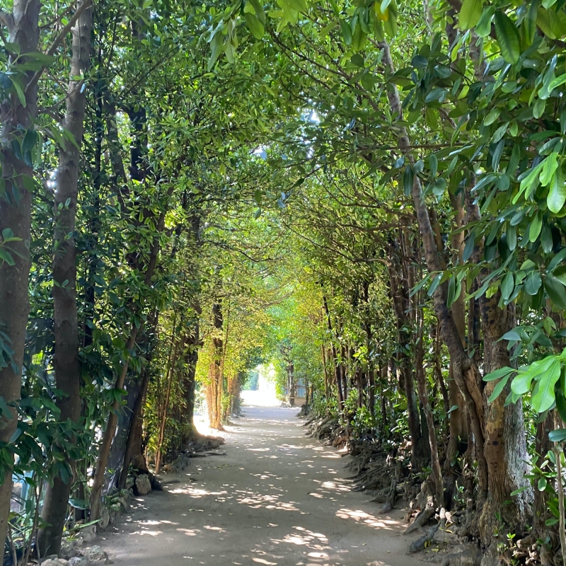 2万本ものフクギが立ち並ぶ、パワースポットとしても人気の絶景スポットが「備瀬のフクギ並木」。「福木」と書くフクギはその名の通り福を招く木と言われており、防風林として台風から人々の暮らしを守る役割を果たしてきました。ここでは、差し込む陽射しや葉が風に揺れる音を感じながら、ゆったりと散策するのがおすすめです。