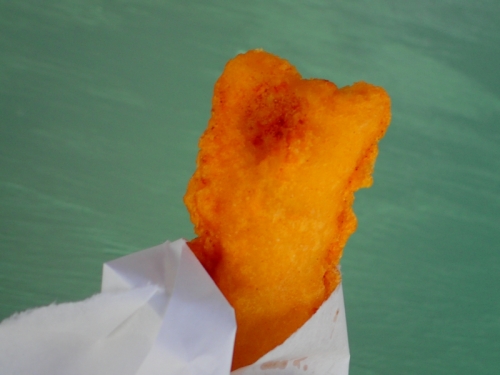 ポテっと分厚い衣で、フリッターの様な食感。もずく、紅いも、ゴーヤなど、沖縄らしい嬉しいラインナップ!奥武島のキレイな海を見ながら、スナック感覚であちこーこー(熱々)を頂きましょう。