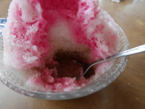 中にはたっぷりのぜんざいが!!沖縄のかき氷と言えばこの「ぜんざい」です。大きくて甘い金時豆を使用していてとっても美味しいです。