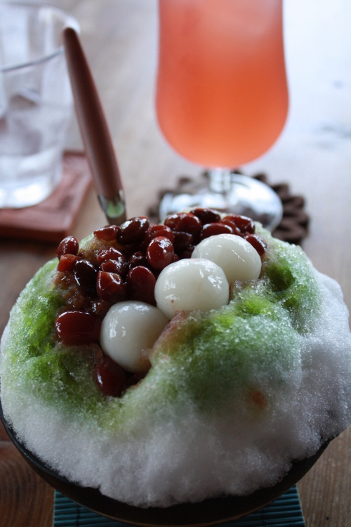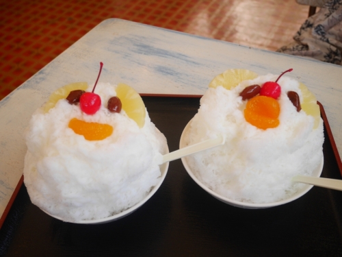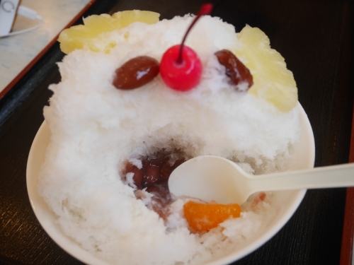 その中でも人気のかき氷!その名も「まるみつくん(500円)」。何と言ってもこの可愛さに思わず笑顔になります。中にはもちろんぜんざいがたっぷり!!少しずつ表情も違ったように見えるので、楽しめるし美味しい、そんなほっこりかき氷です。