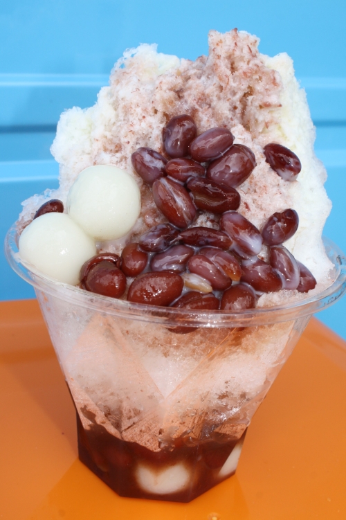ぜんざいと言うと、お餅が入ったあたたかいお汁粉のような甘味を想像する人も多いと思いますが、沖縄のぜんざいはちょっと違い、小豆や金時豆などの甘く煮た豆をふわふわのかき氷にトッピングしたものになります。中には白玉が入ったものがあったり、シロップや練乳がかかっていたりと様々。