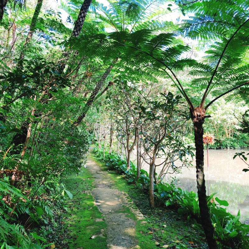 沖縄の豊かな亜熱帯の森とランの花がテーマの自然植物園。自然歩道が設けられており、沖縄の温暖な気候で育つヒカゲヘゴやシダ植物、亜熱帯の花々を眺めながら散策が楽しめます。園内には湖もあり、船に乗りながら湖畔の動植物についてガイドをしてもらうジャングルクルーズもおすすめ。