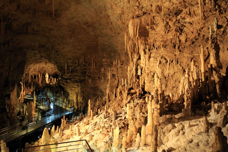 またこのかぼちゃ型鍾乳石の奥には、さらに鍾乳洞が続いています。「リムストーンプール」と呼ばれる、棚田のような段々状のトラバーチン(石灰質の岩)や氷柱状、カーテン状の鍾乳石などが視界いっぱいに広がり、その光景は息を呑む美しさ。竜宮の神が祀られているとも言われている迫力の空間を、ぜひその目で確かめてみてはいかがでしょうか。