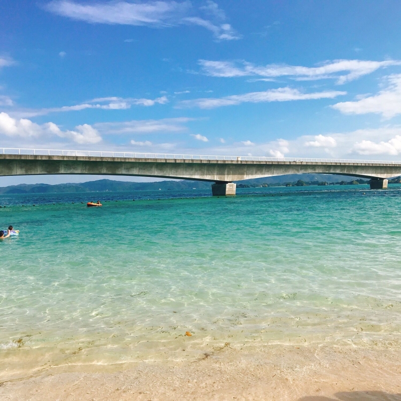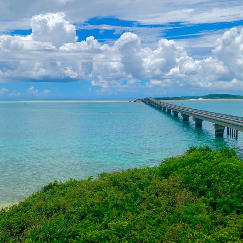 沖縄本島から橋で繋がっており、車で気軽に行くことができます。那覇空港からは、沖縄自動車道経由で約1時間40分ほどの道のりです。