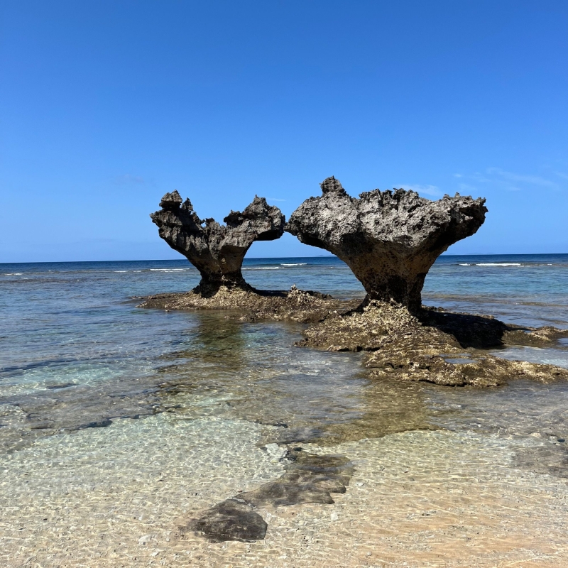 人気アイドルグループ・嵐が出演するCMのロケ地として使われたハートロックがあることから、一気に人気に火がついた島。車であれば10分、徒歩でも1時間ほどで巡れる小さな島です。