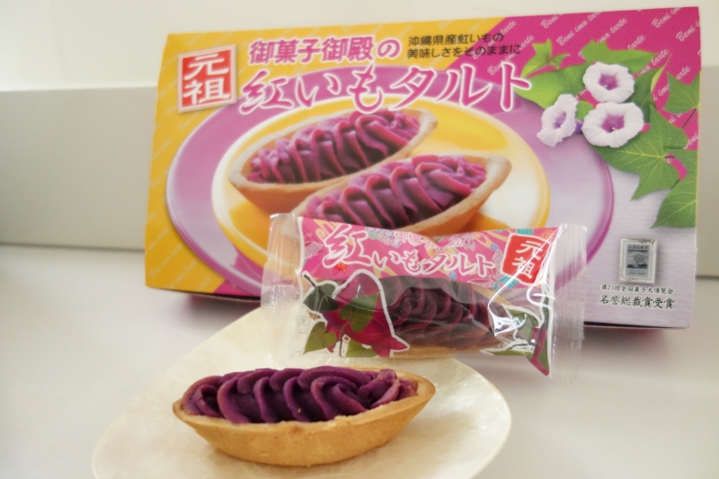 昭和54年、読谷村(よみたんそん)の村おこしをきっかけに生まれた紅いもタルト。現在では、沖縄の新定番として大人気のお菓子です。紫芋の程よい甘さがおいしく、ほっくりとした食感。冷蔵庫で冷やせば、冷たいスィーツ。冷凍庫で凍らせると、タルトアイス。オーブントースターで温めると、出来立てタルトになるなど様々な楽しみ方ができます。