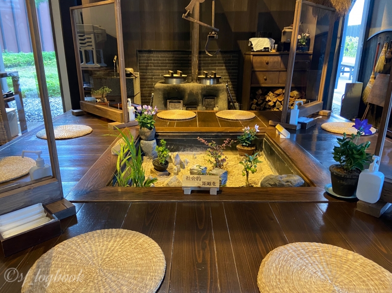お食事処に移動しての食事となります。席は個室スペースになっていて、コロナ対策も万全です。
