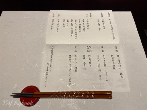 通常メニューの「季節の会席」、春夏の特別会席の「鍬焼き会席」、秋冬の特別会席「雪鍋会席」があります。今回は「季節の会席」をいただきました。