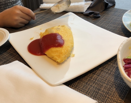 ビュッフェに和食は無いのですが、お願いすれば、別途、お膳で出してくれるのは嬉しいです。ご飯は沖縄郷土料理の じゅーしぃ に アオサの味噌汁 、そしておかずが一品。