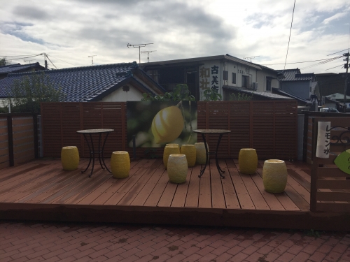 テラス席やカフェ前の道路も全てレモンなレモン一色のカフェです。