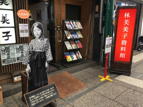 商店街のアーケードを入ってすぐ右側にあるのが明治生まれの小説家林芙美子の資料館。放浪生活を送った彼女が多感な少女時代を過ごしたのが尾道で、その頃住んだ家がここに保存・展示されています。