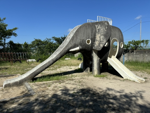 また、こちらの駐車場から徒歩圏内でポルノの聖地巡礼スポット、因島市民会館やゾウさんすべり台があります。