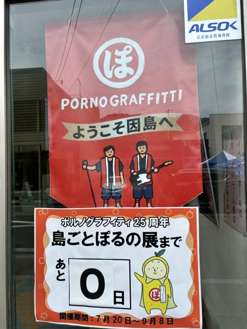 「島ごとぽるの展」とは、2024年7月20日〜9月8日まで、広島県尾道市の因島で行われている、ポルノグラフィティ(以下:ポルノ)に関するイベントです。