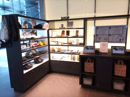 旅の途中では、持っている荷物にも限りがありますし、なるべくかさばる洗濯物を出したくないものです。ロビーの一角の売店では、200円で館内着をレンタルできます。館内着は、そのまま寝ることができる、Tシャツタイプです。自分でサイズを選んで、セルフ決済します。フロントにて現金での支払いもできます。アメニティー類も部屋にはないので、エレベーター前のブースから必要な分だけ持って行くことができます。