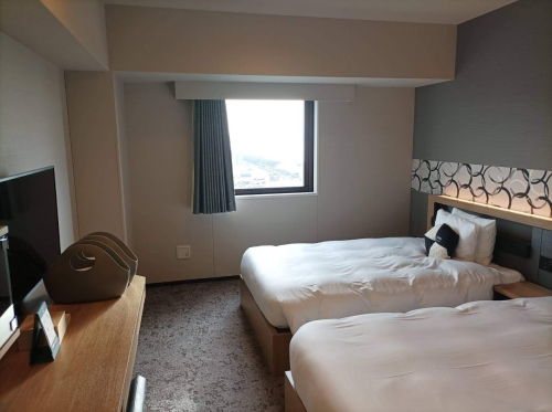 今回筆者はツインルームに宿泊しました。部屋はそれほど広くはありませんが、圧迫感のない家具類がシンプルにまとめられていて、程よく落ち着く空間です。