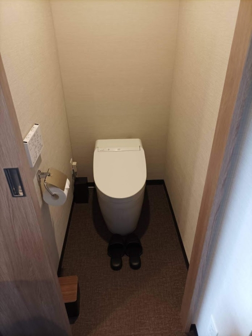 「OMO 関西空港 by 星野リゾート」では、入り口に靴を脱いでスリッパに履き替えるようにとの書置きがあります。そのおかげで、やわらかいカーペットの床も汚れることなく、清潔感がある室内で過ごすことができます。