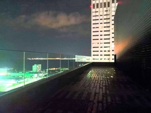 レストランの上には、屋上スペースがあり、夜風を浴びながら、夜景を眺めることができます。朝にはこのスペースで、ヨガのレッスンなどのアクティビティーがあるようです。