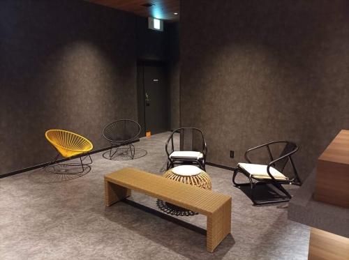 ホテルの1階には、ラウンジのようなスペースがあり、座ってくつろいだり、友人たちと談笑できます。ここは関西空港行き無料シャトルバス(要予約)の待合所にもなっています。