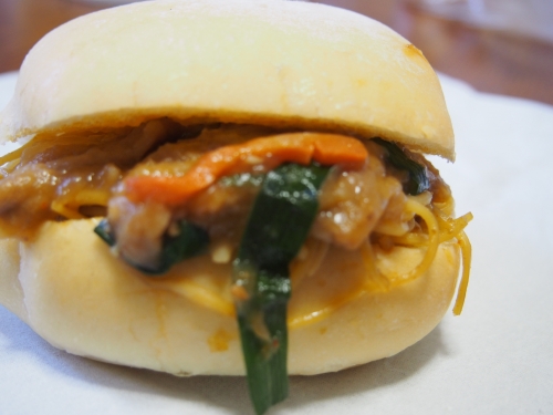 2018年の夏限定商品として、「肉みそやきとり」「チリコンカン」、一口サイズのキューブの中に麻婆の具が入った「麻婆麩」も発売されています。「麻婆麩」は豆腐の代わりに麩が入っている変わりパンです。独特の香辛料が効いていて本格的な味。ホテル施設ならではのレストランとのコラボパン「ニューロ―麺パン」も夏限定で発売されました。