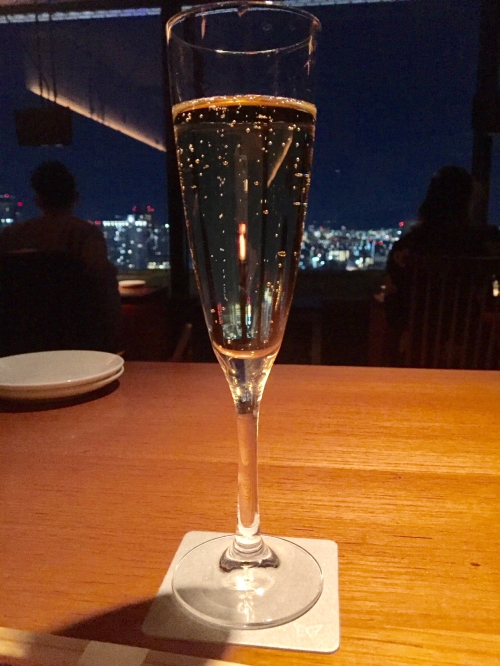 • 写真:トラベルライター目の前にはキラキラ光る梅田の街並みが♪