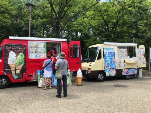 公園内には、屋台トラックで、飲み物、アイスクリーム、たこ焼きやビールなども購入できるので、喉が乾いても安心。