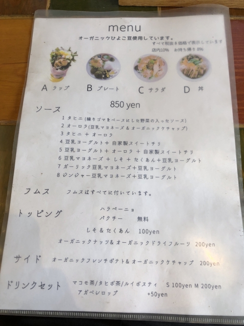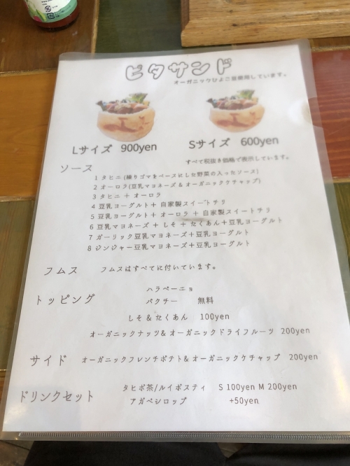 店内はこじんまりしていて、ほっこりする雰囲気。一人でこっそり食べに来たいです。オーガニックひよこ豆を使っているということで、理不尽な食戦争から解放される安心さも味わえます。ファラフェルは単品130円〜(ファラフェルのバラ売りは珍しいので重宝します)。
