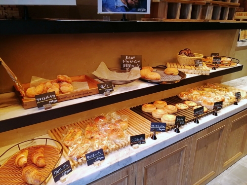 先ほどご紹介した入り口近くにあるベーカリーコーナーには、パンの食べ放題がスタンバイ。テイクアウト用のベーカリーと種類は異なりますが、それでも毎日数種類のパンが並びます。ドリンクもフルーツジュースにコーヒー、紅茶、デトックスウォーターと種類も豊富。これは女性に人気が高いのも頷けます。