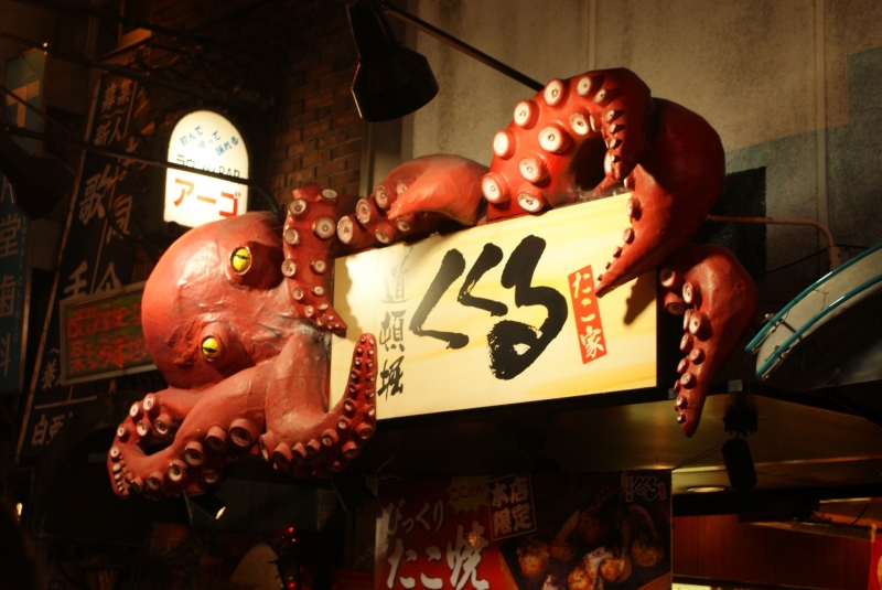 道頓堀グリコサインのお隣にある、大きなタコの看板が目を引く「くくる」の本店。くくるのたこ焼きは、粉もんの普及や発掘に努めている協会の定めた「初代粉もん王座日本一」にも選ばれました。