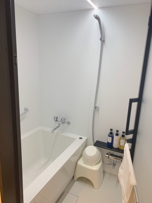 更にバスルームは、家庭にあるお風呂のように、バスタブとシャワーブースが別々になっているので、広々としたところで体を洗え、湯船に浸かれます。風呂椅子や風呂桶がある点も、使い勝手が良いです。